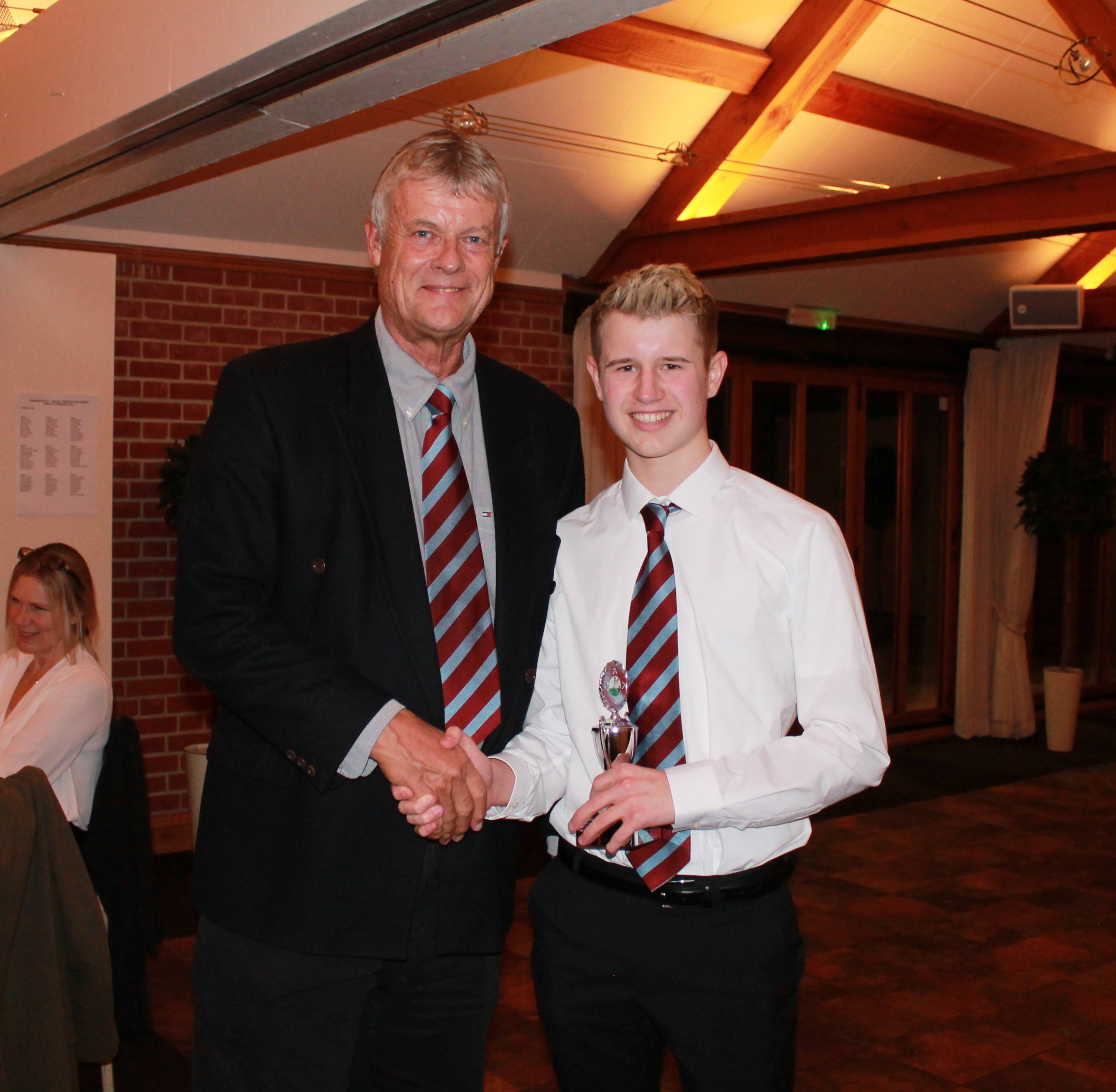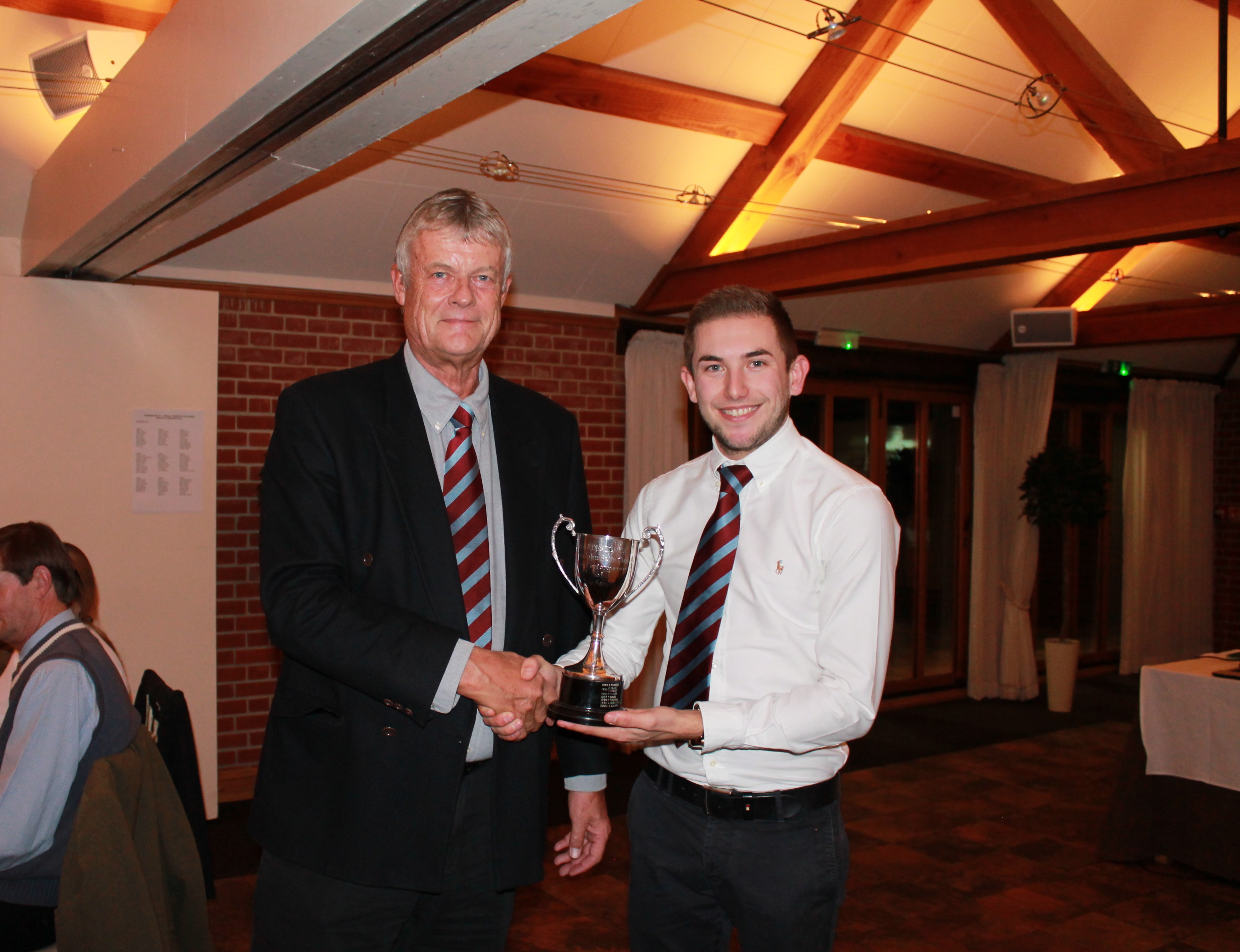 Club captain Peter Thomas presents Lewis Denmark with the John Betts Cup for the most outstanding performance of the year.