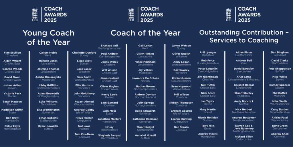 Lewis Denmark, NCF Cricket Development Director, said: “We thoroughly enjoy celebrating our outstanding coaches and volunteers on an annual basis and 2025 was no different. We are thrilled to hand out the 2025 awards to Nat, Lawrence and Andy for their outstanding contribution to the game over many years.